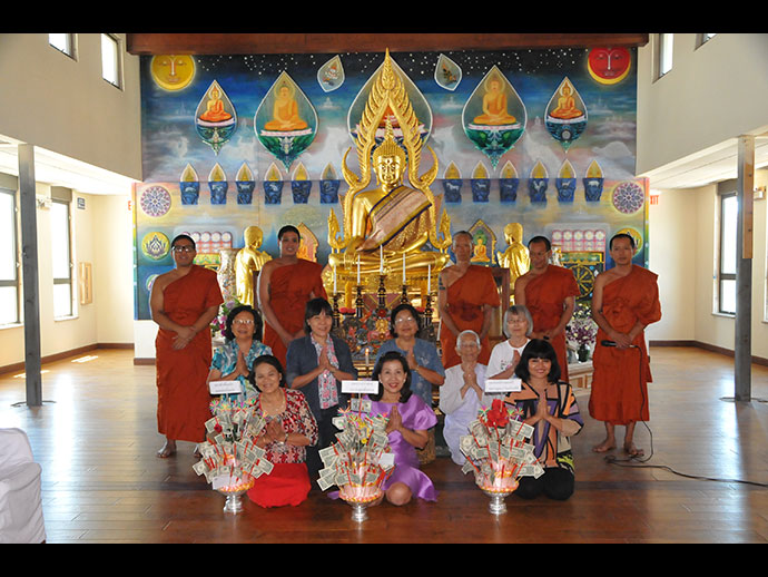 ในพิธีดังกล่าวนี้ประมาณว่าจะมีพระสงฆ์ธรรมทูตจากวัดต่างๆ เข้าร่วมเจริญพระพุทธมนต์ไม่ต่ำกว่า 100 รูป โดยพระธรรมทูตที่ได้รับพระราชทานสมณศักดิ์เป็นพระครู สัญญาบัตรและพระราชาคณะ ก็จะนำพัดยศประจำตำแหน่งมาในพิธีด้วย จึงขอเชิญผู้แทนสมาคม ชมรมต่างๆ และพี่น้องไทยทุกท่านเข้าร่วมพิธีดังกล่าว เพื่อแสดงออกซึ่งความจงรักภักดีต่อองค์ พระประมุขของชาติ โดยพร้อมเพรียงกัน หลังจากเสร็จพิธีแล้วทางวัดมีบริการอาหารว่าง (ข้าวต้ม) ให้ทานกันด้วย