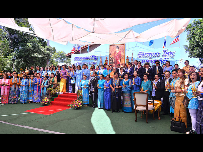 รุ่งขึ้นวันอาทิตย์ที่ 14 สิงหาคม เป็นพิธีเทิดพระเกียรติสมเด็จพระนางเจ้าฯ พระบรมราชินีนาถ เนื่องในมหามงคลสมัยเฉลิม พระชนมพรรษา “84 พรรษามหาราชินี” และงานวันแม่แห่งชาติ ซึ่งคณะครูอาสาฯ ร่วมกับสภาสตรีไทยแห่งแคลิฟอร์เนีย ภาคใต้ โดย กิริยา หิรัญพลกุล ประธานสภาสตรี พร้อมใจกันจัดขึ้น รวมพลังใจพสกนิกรทุกหมู่เหล่าน้อมเกล้าฯ ถวายพระพร ทรงพระเจริญยิ่งยืนนาน โดยมีผู้แทนสมาคมชมรมต่างๆ และองค์กรเอกชนเข้าร่วมวางพานพุ่มเงินพุ่มทองถวายพระพร และ ร้องเพลงสดุดีมหาราชาก้องวัดไทย พิธีดังกล่าว คุณจิรภาพรรณ มลิทอง ผู้อำนวยการอาวุโสสำนักงานส่งเสริมการค้าในต่าง ประเทศ ผู้แทนกงสุลใหญ่ ณ นครลอสแองเจลิส เป็นประธานในพิธีนำถวายพระพร