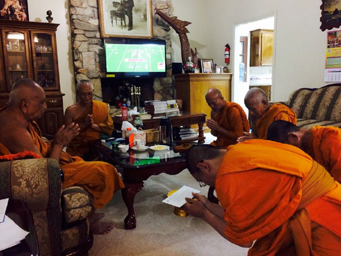 สมัชชาสงฆ์ไทยในสหรัฐอเมริกา เขตรัฐตะวันตกใต้ และวัดไทยลอสแองเจลิส โดย หลวงพ่อใหญ่ ท่านเจ้าคุณพระเทพ มงคลวิเทศ และพระสงฆ์ธรรมทูตที่ปฏิบัติศาสนกิจตามวัด ต่างๆ ในปริมณฑลรัฐแคลิฟอร์เนียและใกล้เคียง ได้รวมใจเป็น หนึ่งเดียวเจริญพระพุทธมนต์และทำสมาธิแผ่เมตตาถวายแด่ พระบาทสมเด็จพระเจ้าอยู่หัว พระผู้เป็น “มิ่งขวัญ” ของพสก นิกรชาวไทยทั้งในและนอกประเทศ ในวันศุกร์ที่ 14 ตุลาคม 2559 เวลา 19.00 น. เป็นต้นไป ขอเชิญพี่น้องไทยทุกท่าน ร่วมแสดงความจงรักภักดี รวมใจเป็นหนึ่งเดียวฟังพระสาธยาย พระปริตรน้อมใจถวายพระพร ขอพระองค์ทรงหายจาก พระอาการประชวรและทรงพระเจริญยิ่งยืนนาน และหลังจากฟังพระคุณเจ้าเจริญพระพุทธมนต์ถวายพระพรจบแล้ว ขอเชิญทานอาหารว่าง (ข้าวต้ม) โดยชมรมอดีตทหารไทยฯ และเพื่อนพ้องน้องพี่บริการพร้อมกันด้วย