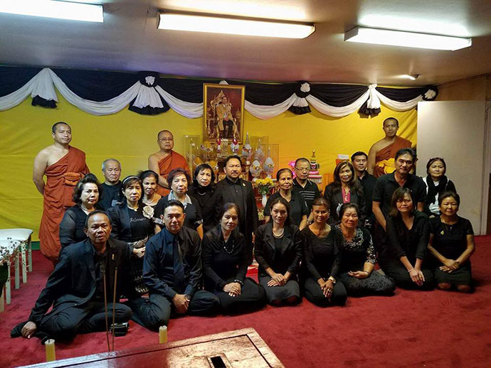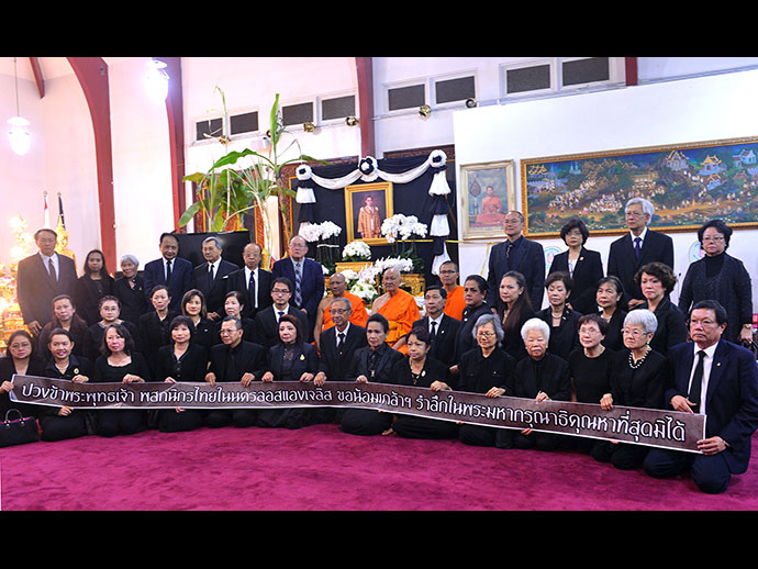 พิธีสวดพระอภิธรรมถวายเป็นพระราชกุศล แด่พระบาทสมเด็จพระปรมินทรมหาภูมิพลอดุลยเดช พระผู้เสด็จสู่สวรรคาลัย ซึ่งวัดไทยแอลเอ โดยหลวงพ่อใหญ่ ท่านเจ้าคุณพระเทพมงคลวิเทศ จัดขึ้นตามมติมหาเถรสมาคม องค์กรบริหารสูงสุดของ คณะสงฆ์ไทย โดยเริ่มตั้งแต่วันที่ 17 ตุลาคม 2559 เป็นต้นมา และจะสิ้นสุดในวันอังคารที่ 15 พฤศจิกายน 2559 หลังจาก นั้น คณะสงฆ์วัดไทยฯ มีมติให้จัดพิธีสวดพระอภิธรรมถวายเป็นพระราชกุศลทุกๆ วันอาทิตย์โดยจะเริ่มตั้งแต่วันอาทิตย์ที่ 20 พฤศจิกายน 2559 เป็นต้นไป ขอเชิญพี่น้องไทยผู้ศรัทธาแจ้งความจำนงขอร่วมเป็นเจ้าภาพได้ทุกวัน กรุณาขอข้อมูลเพิ่ม เติมได้ที่ 818-780-4200 หรือที่ 818-445-6366