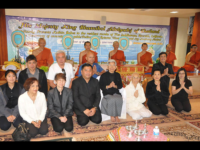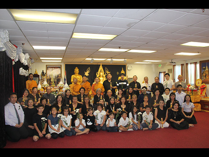 ตลอดเวลา 1 เดือนที่มีพิธีสวดพระอภิธรรมถวายเป็นพระราชกุศล แด่พระบาทสมเด็จพระปรมินทรมหาภูมิพลอดุลยเดช ณ วัดไทยลอสแองเจลิส ตามมติของมหาเถรสมาคมนั้น พื้นที่บนอุโบสถศาลาทุกตารางนิ้วเต็มไปด้วยพี่น้องพสกนิกรชาวไทย ทุกคืนจะแทบจะหาที่เดินไม่ได้เลย จะเรียกว่าเป็นปรากฏการณ์ครั้งประวัติศาสตร์ของวัดไทยก็ว่าได้ นอกจากนั้นอาหารว่าง ที่ทางวัดได้มอบหมายให้แม่ครัวของวัดจัดบริการทุกคนแต่แรกเริ่มนั้น ก็ปรากฏว่าพี่น้องพสกนิกรชาวไทยต่างก็นำอาหาร จากบ้านมาบริการจนแม่ครัววัดไทยเบาแรงไปเยอะเลย เหนืออื่นใดบรรยากาศของการบริการอาหาร และการรับประทานก็ ดูมีชีวิตชีวาเป็น “บรรยากาศแบบไทยๆ” นอกแผ่นดินไทยโดยแท้