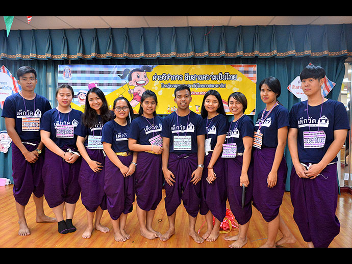 ในส่วนของโรงเรียนพุทธศาสนาวัดไทยฯ เมื่อวันเสาร์-อาทิตย์ที่ผ่านมา คณะครูอาสาประจำการหนุ่มสาวไฟแรงของเราได้ ปรับเปลี่ยนบรรยากาศการเรียนการสอนในห้องเรียนเป็น “ค่ายวิชาการ สืบสานความเป็นไทย” ทั้งสองวัน โดยจัดแบ่งกลุ่ม นักเรียนทุกระดับชั้นเป็น 4 สี 4 กลุ่ม จัดกิจกรรมหลากหลายทั้งด้านภาษาไทยและวัฒนธรรมไทยให้นักเรียนได้มีส่วนร่วม เช่น การทำอาหารไทยแบบง่ายๆ การทายบัตรคำ การละเล่นแบบไทยๆ การแสดงชุดต่างๆ ที่ส่งให้นักเรียนรู้จักคิดประดิษฐ์ สร้างสรรค์ขึ้นมา ซึ่งปรากฏเป็นที่ชอบใจของนักเรียนได้มีส่วนร่วมอย่างสนุกสนาน ผู้ปกครองที่เข้าร่วมสังเกตการณ์ก็พอใจ เป็นอย่างมากเรียกร้องให้จัดขึ้นอีกในเทอมต่อไป
