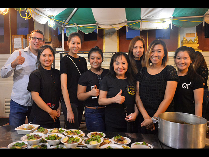 คุณนิวภา ภูมะธน เป็นเจ้าภาพข้าวต้ม พี่ใหญ่ จัดก๋วยเตี๋ยวน้ำใส ร้านโอชา บริการข้าวต้ม คณะผู้ปกครองนักเรียนวัดไทย คณะคุณปุ๋ย สมเจตน์ กฤษณายุธ คณะผู้ปกครองนาฏศิลป์ ก๋วยเตี๋ยว “ละโว้” โดย สมพงษ์-พัชรา คำชำนาญ ร้านลำขนาด โดย บันลือ-ราตรี สอนบาลี และ ร้านเฮงเฮง โดย คุณสุชาดา วงศ์อัศวฤทธิ์ คณะคุณอาภรณ์ พัวทัศนานนท์ และเพื่อนๆ คณะคุณสุ และเพื่อนๆ สมาคม อิสาน โดย คุณจันทรา แก้วดี และ คุณพูนสิน สุทธิสาร บริการข้าวต้ม กลุ่มหมอเขียว บริการน้ำสมุนไพร ขนม วัดมอญรามัญ บริการข้าวต้ม 2 หม้อใหญ่ แม่ลำใย ผิวเผือก และลูกๆ บริการข้าวผัด กะเพราหมู กรอบ กะเพราไก่ และมะเขือยาว ร้านวิม โดย คุณโสภณ-สุภาวดี นุชละออ บริการ ข้าวต้ม 2 หม้อใหญ่ ไทยแลนด์พลาซ่า โดย คุณเพ็ญพิมพ์ จิตรธร บริการข้าวต้ม 2 หม้อใหญ่ และขนมถั่วแปบ ร้านครัวไทย โดย คุณน้อง ปิยธิดา การิกาญจน์ คุณเศวต (ไก่) แม้นสงวน คุณกานดา จิตรานุเคราะห์ และทีมงานไทยแลนด์พลาซ่า บริการก๋วยเตี๋ยวลูกชิ้น และขนมกล้วย คณะผู้ปกครองนักเรียนดนตรีไทยยุคแรกๆ และ คุณอรไทย ไชยสิทธิ์ บริการข้าวต้ม และขนมไทยทุกชนิด เป็นรายการ สุดท้าย ขอให้เจริญสิริสวัสดิ์พิพัฒนมงคลตลอดกาล