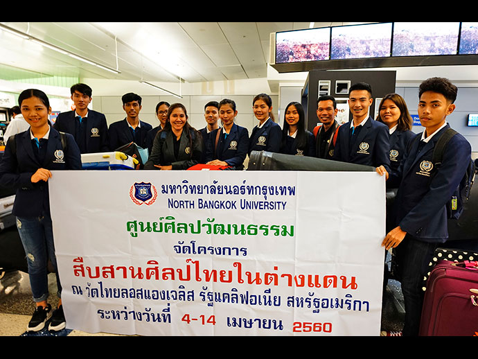 เดินทางถึงวัดไทยลอสแองเจลิสเป็นที่เรียบร้อยแล้ว เมื่อค่ำวันอังคารที่ผ่านมา คณะนักศึกษาจากมหาวิทยาลัยนอร์ทกรุงเทพ ในนามศูนย์ศิลปวัฒนธรรมของมหาวิทยาลัย นำโดย อ.อรอนงค์ รักเดช อดีตครูอาสาภาคฤดูร้อนวัดไทย ปี 2558 พร้อมด้วย อาจารย์และนักศึกษารวม 13 ท่าน จัดโครงการ “สืบสานศิลป์ไทยในต่างแดน” ร่วมกับวัดไทยลอสแองเจลิส ในงานเทศกาล ประเพณีสงกรานต์ วันที่ 8-9 เมษายน ศกนี้ พี่น้องไทยจะได้ชมการแสดงทางวัฒนธรรมที่หลากหลายอลังการ คุ้มค่าและอิ่ม บุญกับการร่วมงานเทศกาลสงกรานต์วัดไทยปีนี้แน่นอน โปรดอย่าพลาด