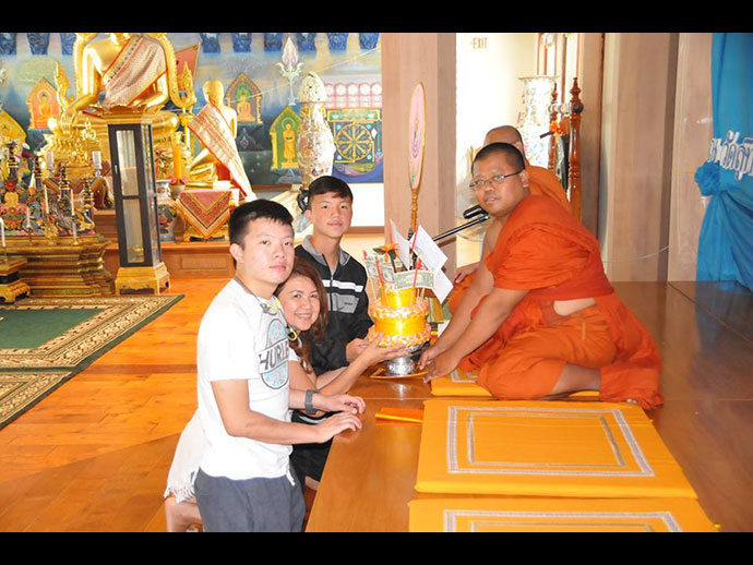 วัดพระธาตุดอยสุเทพ ยูเอสเอ เมืองชิโนฮิลส์ รัฐแคลิฟอร์เนีย ขอเชิญพุทธศาสนิกชนร่วมบำเพ็ญบุญ “ถวายผ้าพระกฐินพระราชทาน-สืบสานประเพณีลอยกระทง วางดอกไม้จันทน์ ฟ้อนเล็บถวายเป็นพระราชกุศลอุทิศแด่ ร.9” ในวันอาทิตย์ที่ 22 ตุลาคม 2560 ตั้งแต่เวลา 10.30 น. เป็นต้นไป ทำบุญตักบาตร ถวายมหาสังฆทาน ฟังพระธรรมเทศนา ถวายผ้าพระกฐิน ถวายผ้าป่าสามัคคี ชม-ฟัง ดนตรีไทย ของคณะนักเรียนโรงเรียนพุทธศาสนาวันอาทิตย์ ติดต่อสอบถามได้ที่ วัดพระธาตุดอยสุเทพ ยูเอสเอ Tel: 909-606-9502 E-mail: watchino18@gmail.com