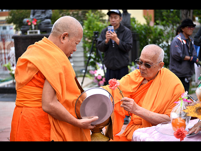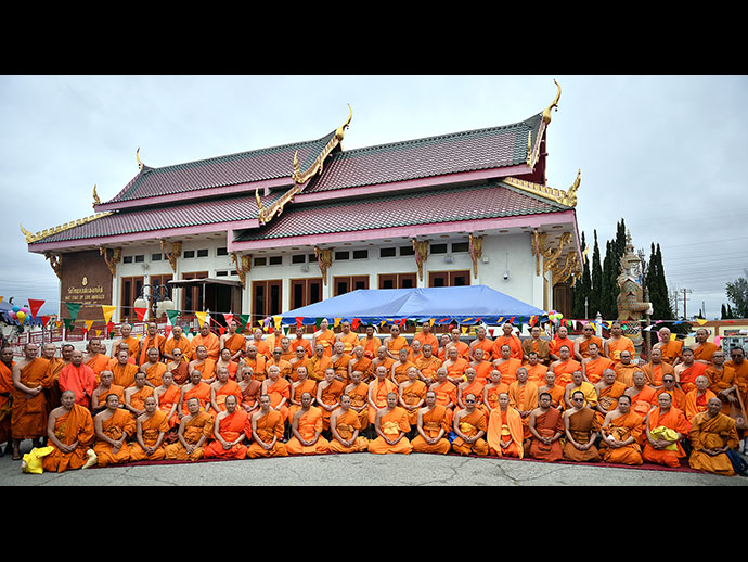 งานพิธีธรรมสมโภชอายุวัฒนมงคล 86 ปี หลวงพ่อใหญ่ ท่านเจ้าคุณพระเทพมงคลวิเทศ เจ้าอาวาสและประธานอำนวย การวัดไทยแอล.เอ. ซึ่งคณะสงฆ์และกรรมการวัดพร้อมใจกันจัดถวายเมื่อเช้าวันอาทิตย์ที่ 17 มิถุนายน 2561 มีพระสงฆ์ ธรรมทูตและญาติโยมศรัทธาเข้าร่วมพิธีอย่างอบอุ่นเต็มอุโบสถศาลา โดยเฉพาะพระสงฆ์มีจำนวน 159 รูป มากกว่า จำนวนที่ได้อาราธนาไว้ เสริมบารมีหลวงพ่อใหญ่ในวัย 86 ปี มีกำลังใจปฏิบัติศาสนกิจเพื่อประโยชน์ของการพระพุทธ ศาสนาในต่างแดนตราบนานเท่านาน คณะสงฆ์วัดไทยขออนุโมทนาขอบคุณพระคุณเจ้าและญาติโยมที่เข้าร่วมพิธีสมโภช อายุวัฒนมงคลหลวงพ่อใหญ่ โดยร่วมบริจาคทรัพย์ตามกำลังศรัทธาเพื่อสนับสนุนกิจกรรมและบำรุงศาสนสมบัติของวัด ซึ่งรวบรวมเป็นยอดรายรับทั้งสิ้น 93,538.00 เหรียญ