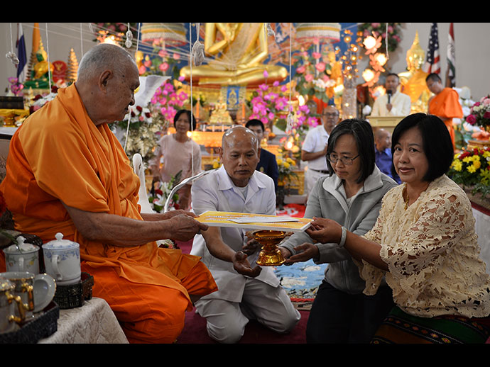 ขออนุโมทนา คุณละมูล หิรัญสมบูรณ์ ดัลล์ ก่อนล่วงลับจากไปได้ทำพินัยกรรมมอบไว้กับหลานสาว คุณลักกี้ หิรัญสมบูรณ์ ขอบริจาคร่วมทอดผ้าป่ามหากุศลสร้างศูนย์ปฏิบัติธรรมวัดไทย เป็นจำนวน 50,000.00 ดอลล่าร์สหรัฐ โดยได้ทำพิธีมอบถวายผ่านหลวงพ่อใหญ่ ในงานพิธีสมโภชอายุวัฒนมงคล ซึ่งคุณละมุลสมัยที่ยังมีชีวิตอยู่ได้ร่วมบริจาค สร้างศูนย์ปฏิบัติธรรมไว้แล้วเป็นจำนวน 50,000.00 ดอลล่าร์สหรัฐ จึงรวมเป็นเงินทั้งสิ้น 100,000.00 ดอลล่าร์สหรัฐ ขออำนาจแห่งบุญจงบันดาลให้ดวงวิญญาณของคุณมุล หิรัญสมบูรณ์ ดัลล์ ไปสู่สุคติภพด้วย เทอญ