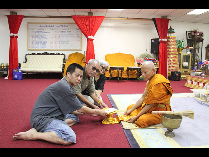 วันเสาร์ที่ 14 กรกฎาคม 2561 เวลา 09.00 น. หรือ 9 โมงเช้า ณ บริเวณหน้าอาคารไทยแลนด์พลาซ่า ไทยทาวน์ บนถนน ฮอลลีวูด ซึ่งเป็นสถานที่สำหรับพิธีทำบุญตักบาตรทุกๆ วันเสาร์ สำหรับพี่น้องไทยย่านไทยทาวน์ได้มีโอกาสทำบุญตักบาตร สร้างเสริมชีวิตจิตใจให้แช่มชื่นเอิบอิ่มด้วยบุญ ใส่บาตรพระสงฆ์จากวัดต่างๆ ในเขตแอลเอและใกล้เคียง ซึ่งดำเนินตามรอย บาทพระพุทธองค์ทรงถือการบิณฑบาตเป็น “พุทธกิจ” ประจำวันในบรรดาพุทธกิจ 5 ประการ ในช่วงดังกล่าว คณะครู อาสาสมัครภาคฤดูร้อน โรงเรียนพุทธศาสนาวัดไทยฯ นำโดยครูใหญ่เพ็ญนี ดร.บุษกร เลิศวีระศิริกุล พร้อมด้วยคณะครู อาสาและเด็กๆ นักเรียนในชุดน่ารักๆ สืบสานตำนานเทศน์มหาชาติ กัณฑ์ “หิมพานต์” เดินตามเป็นลูกศิษย์พระขอรับ บริจาคร่วมเป็นเจ้าภาพเทศน์มหาชาติ กัณฑ์หิมพานต์ ซึ่งคณะครูอาสารับเป็นเจ้าภาพเทศน์มหาชาติประจำปีของวัดไทยฯ ในวันอาทิตย์ที่ 5 สิงหาคม 2561 เวลา 14.00 น. หรือบ่าย 2 โมง หลังจากเทศกาลเข้าพรรษาไปแล้ว 1 สัปดาห์ ขอเชิญ พี่น้องไทยที่ศรัทธาใส่บาตรพระสงฆ์ ณ ไทยทาวน์ ร่วมบุญบารมีบริจาคตามศรัทธาเป็นเจ้าภาพเทศน์มหาชาติ โดยพร้อมเพรียงกัน