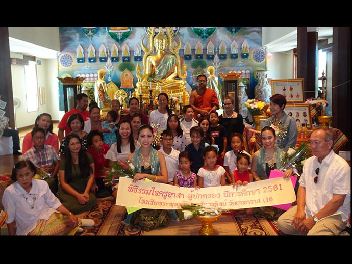 ในโอกาสที่ อาจารย์กังวาล เกิดผล หัวหน้าแผนกนาฏศิลป์ โรงเรียนพุทธศาสนาวัดไทยลอสแองเจลิส ได้รับพระราชทาน เครื่องราชอิสริยาภรณ์อันเป็นที่สรรเสริญยิ่งเหรียญเงินดิเรกคุณาภรณ์ (ร.ง.ภ.) โดยได้เข้ารับพระราชทาน ณ ทำเนียบ กงสุลใหญ่ ณ นครลอสแองเจลิส เมื่อวันที่ 21 พฤษภาคม 2561 นอกจากนั้น เนื่องในเทศกาลวิสาขบูชา วันสำคัญสากล ของโลก ประจำปี พ.ศ. 2561 คุณสมนึก ธาระ กรรมการบริการวัดไทยแอล.เอ. ได้รับพระมหากรุณาธิคุณจากสมเด็จ พระเทพรัตนราชสุดาฯ สยามบรมราชกุมารี พระราชทานรางวัลเสาเสมาธรรมจักร ในฐานะผู้บำเพ็ญประโยชน์ต่อพระ พุทธศาสนา ด้านสนับสนุนการเผยแผ่พระพุทธศาสนาในต่างประเทศ เมื่อวันที่ 25 พฤษภาคม 2561 ณ พลับพลาพิธี ลานคนเมือง กรุงเทพมหานคร คณะสงฆ์วัดไทยฯ และกรรมการวัด มีความยินดีเป็นอย่างยิ่ง จึงพร้อมใจกันจัดงานพิธี ฉลองเพื่อร่วมแสดงความยินดีในวันอาทิตย์ที่ 7 ตุลาคม 2561 เวลา 09.30 น. เป็นต้นไป โดยจะจัดฉลองให้ คุณทองหล่อ โพธิ์แดง กรรมการบอร์ดวัดไทยฯ ซึ่งได้รับพระราชทานรางวัลเสาเสมาธรรมจักร จากสมเด็จพระเทพรัตนราชสุดาฯ สยามบรมราชกุมารี เมื่อปี พ.ศ. 2557 ถือเป็นการฉลองแสดงความยินด่แก่ อาจารย์กังวาล เกิดผล คุณสมนึก ธาระ และ คุณทองหล่อ โพธิ์แดง ในคราวเดียวกัน โดยรายละเอียดของงานทางวัดจะแจ้งให้ทราบตามลำดับ