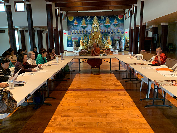 ประชุมประจำเดือนคณะสงฆ์วัดไทยฯ และคณะกรรมการบริหารวัดไทยฯ เมื่อค่ำวันเสาร์ที่ผ่านมา คณะสงฆ์และกรรมการวัดเข้าร่วมประชุมกันพร้อมหน้า โดย “ท่านเจ้าคุณเริ่ม” พระวิเทศกิตติคุณ และพระมหาดุสิต ญาณภูสิโต เลขานุการวัดไทยฯ ช่วยกันดำเนินการประชุม พระวิเทศกิตติคุณได้แจ้งให้ที่ประชุมรับทราบว่า วัดไทยฯ ของเราได้รับเกียรติจากสมัชชาสงฆ์ไทยในสหรัฐอเมริกา เป็นเจ้าภาพจัดฉลองและมุทิตาจิตแด่พระธรรมทูตผู้สอบได้ “เปรียญธรรม” ประโยคต่างๆ ได้ในสนาม หลวง โดยผนวกเข้ากับงานธรรมสมโภชอายุวัฒนมงคลครบ 88 ปี หลวงพ่อใหญ่ ท่านเจ้าคุณพระเทพมงคลวิเทศ เจ้าอาวาสวัดไทยฯ กำหนดงานวันอาทิตย์ที่ 14 มิถุนายน 2563