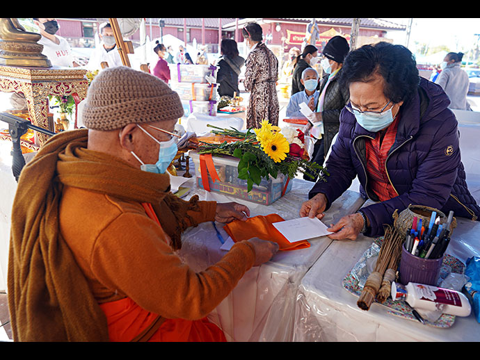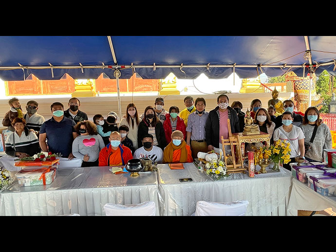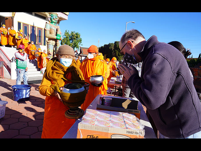 คณะสงฆ์วัดไทยฯ โดยหลวงพ่อใหญ่ ท่านเจ้าคุณพระเทพมงคลวิเทศ และกรรมการวัดไทยฯ ขออนุโมทนาบุญตระกูล “สังขมี” นำโดย คุณจี๊ด ศรัทธาพงษ์ สังขมี และน้องๆ หลานๆ ซึ่งประกอบกิจการร้านอาหาร “จิตลดา” “เอ็มโพเรียม” และ “บ้านไทย” ที่เมืองลองบีช นำอาหารพื้นบ้านของพี่น้องชาวใต้เลิศรสหลากชนิดมาถวายพระสงฆ์วัดไทยฯ เมื่อวันจันทร์ที่ผ่านมา ตามโครงการ “บิณฑบาตอาหารกลางวันเดือนละครั้ง” พร้อมทั้งถวายสังฆทานอุทิศให้บุพการีชน ขอบารมีพระคุณพระรัตนตรัยโปรดคุ้มครอง ประสบความสุขความเจริญ เจริญในหน้าที่กิจการงานทั้งปวง และเจริญในธรรมตลอดกาลเป็นนิตย์ เทอญฯ