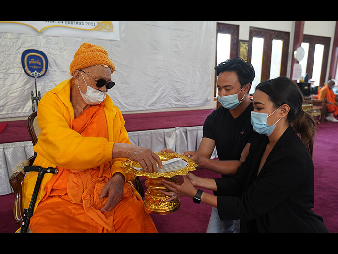 งานเทศกาลสงกรานต์วันขึ้นปีใหม่ของไทยแต่โบราณ พุทธศักราช 2564 ซึ่งวัดไทยฯ มีกำหนดจัดขึ้นในวันอาทิตย์ที่ 11 เมษายน 2564 นั้น ถือกันเป็นทำเนียมว่าจะการเปลี่ยนผ้าห่มพระบูชาพระพุทธรูปองค์สำคัญๆ ของทางวัด เช่น พระพุทธนรเทพศาสดา พระประธาน พระพุทธชินบพิตร พระหลวงพ่อแก้วศักดิ์สิทธิ์ เป็นต้น โดยมีญาติโยมขอรับเป็นเจ้าภาพผ้าห่มตามศรัทธาองค์ละ $299.99 คณะสงฆ์และกรรมการวัดขออนุโมทนาบุญ ขอบคุณเจ้าภาพดังต่อไปนี้ คือ คุณพงษ์ศักดิ์-วีณา อภิญญาวาท บูชาผ้าห่มพระพุทธนรเทพศาสดา คุณวรินทร์ทิพย์ แจ้งดี นายกสมาคมไทยฯ บูชาผ้าห่มพระพุทธชินบพิตร คุณเชอรี่ คำลือ บูชาผ้าห่มสมเด็จพระพุฒาจารย์ (โต พรหมรํสี) คณะบาลีศึกษาวัดไทยฯ บูชาผ้าห่มพระมหาโมคคัลลานะ พระอัครสาวกฝ่ายซ้าย คุณสมชาย ไทยทัน กรรมการบอร์ดวัดไทยฯ บูชาผ้าห่มพระมงคลเทพโมลี เจ้าอาวาสวัดไทยฯ รูปที่ 2 และ คุณศรีวงศ์ อาญาสิทธิ์ บูชาผ้าห่มพระสีวลี ผู้ได้รับยกย่องจากพระพุทธองค์ว่ามีเอตทัคคะ เป็นผู้เลิศในทางมีลาภสักการะมาก ขออำนวยเจ้าภาพทุกท่านจงเจริญ เจริญสิริสวัสดิ์ด้วยจตุรพิธพรชัยตลอดากาล