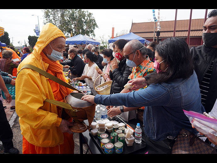 งานเทศกาลประเพณีสงกรานต์วันขึ้นปีใหม่ของไทยแต่โบราณ ณ วัดไทยลอสแองเจลิส ซึ่งคณะกรรมการโดย คุณตัน พัฒนะ นายกสภาไทยทาวน์ ประธานจัดงาน และทีมงาน ได้พร้อมใจกันจัดขึ้นเมื่อวันอาทิตย์ที่ 11 เมษายนที่ผ่านมา โดยมีพิธีทำบุญตักบาตรยามเช้า ถวายภัตตาหารเพล โรงทานบริการอาหารไทยหลากหลายสำหรับพี่น้องไทยที่ไปร่วมงาน พิธีมาติกาบังกุลอัฐิ รูป และรายชื่อบรรพบุรุษผู้มีคุณูปการเพื่ออุทิศส่วนกุศลตามประเพณี พิธีทอดผ้าป่าบริวารสงกรานต์ สรงน้ำพระและรดน้ำดำหัวผู้อาวุโสของชุมชน โดยงดการแสดงอันเนื่องด้วยวัฒนธรรมประเพณี เช่น นาฏศิลป์ดนตรีไทย การประกวดต่างๆ เป็นต้น ทั้งนี้เพื่ออนุวัตรตามข้อพึงปฏิบัติตามคำแนะนำของทางฝ่ายบ้านเมือง อันเนื่องมาจากสถานการณ์แพร่ระบาดของไวรัสโควิด-19 ท่านกงสุลใหญ่ ณ นครลอสแอนเจลิส คุณมังกร ประทุมแก้ว ให้เกียรติเป็นประธานในพิธีเปิดงาน และมอบเกียรติบัตรประกาศเกียรติคุณให้กับประธานและรองประธาน