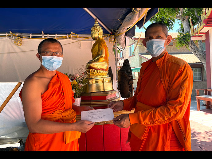 คณะวัดไทยฯ โดยหลวงพ่อใหญ่ ท่านเจ้าคุณพระเทพมงคลวิเทศ ขออนุโมทนบุญ คุณรัชนี เหมาคม และ คุณกนกวรรณ รอดโฉม ที่ศรัทธารับเป็นเจ้าภาพซ่อมแซม “หน้าบัน” อุโบสถศาลาวัดไทยฯ จำนวน 2 หน้าบัน โดยร่วมบริจาคหน้าบันละ 2,000.00 เหรียญสหรัฐ คุณพัชรี นาดี และลูกชาย คุณธงชัย – คุณสุชาดา นาดี บริจาคเป็นเจ้าภาพหางหงส์ เป็นเงิน $500.00 และขออนุโมทนาบุญ คุณพงษ์ศักดิ์ - คุณรุจา ตุลาภรณ์ เป็นเจ้าภาพคันทวยอุโบสถศาลา และดาวจำนวน 5 ดวง เป็นเงิน $1,000.00 ขอให้บุญรักษาคุณพระคุ้มครองให้เจริญสิริสวัสดิ์และเจริญในธรรมตลอดกาล