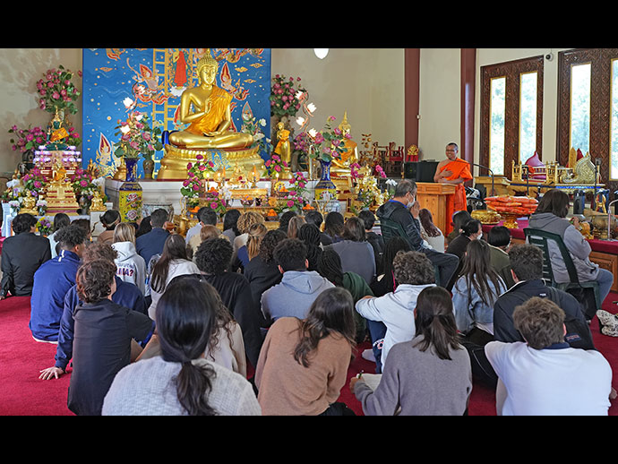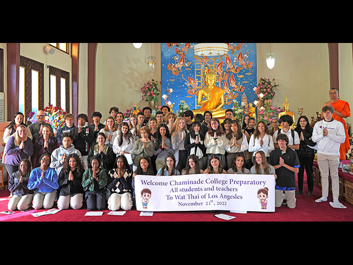 งานคืนสู่เหย้ารวมตัวศิษย์เก่าเด็กวัดไทยฯ ภายใต้ธีมงานว่า “พี่น้องเก่าใหม่รวมใจเด็กวัด” ซึ่งโรงเรียนพุทธศาสนาวัดไทยฯ โดยชมรมผู้ปกครองฯ จัดขึ้นในวันอาทิตย์ที่ 18 ธันวาคม ที่จะถึงนี้ เริ่มงานเวลา 16.00-20.00 น. นั้น ส่วนหนึ่งก็เพื่อสร้างปฏิสัมพันธ์และแลกเปลี่ยนทัศนคติสร้างสรรค์ อีกส่วนหนึ่งก็เพื่อนำรายได้จากงานนี้สมทบทุนเป็นค่าใช้จ่ายอุปกรณ์การเรียนการสอนของทางโรงเรียน ขณะนี้ทางโรงเรียนเปิดบริการบัตรการกุศลแล้ว โดยตั้งบูธบริการบัตรเข้างาน และบัตร Raffle ชิงรางวัลตั๋วเครื่องบินไปกลับแอลเอ-กรุงเทพ ราคา $1,000.00 พร้อมทั้งมีเสื้อ “เด็กวัด” จำหน่ายในราคาตัวละ $10.00 โดยทุกๆ วันเสาร์-อาทิตย์ ทางโรงเรียนโดย คุณเคท ผู้ปกครองนักเรียนระดับประถมปลาย ตั้งบูธบริการ ณ บริเวณตลาดอาหารวัดไทยฯ ด้านติดกับอุโบสถศาลา เวลา 09.00-16.00 น. ขอเชิญญาติโยมสาธุชนไปสนับสนุนกันได้ ขอขอบคุณล่วงหน้ามา ณ โอกาสนี้