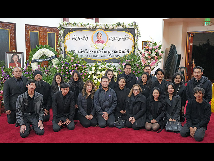 คณะสงฆ์วัดไทยลอสแองเจลิส และคณะกรรมการวัด ขอแสดงความเสียใจต่อครอบครัว “ประชาศรัยสรเดช” ที่ได้สูญเสีย คุณเกียรติ ประชาศรัยสรเดช อดีตประธานกรรมการอำนวยการ (Board of Directors) วัดไทยฯ ชุดที่ 2 ไปอย่างไม่วันหวนคืน เมื่อวันจันทร์ที่ 12 ธันวาคมที่ผ่านมา ที่เมืองไทย ด้วยสิริอายุ 87 ปี คุณเกียรติ ประชาศรัยสรเดช เป็นหนึ่งในผู้ริเริ่มสร้างวัดไทย ร่วมกับคุณพูนศักดิ์ ซอโสตถิกุล คุณอุไร เรือนพรหม ป๋าอรุณ สีบุญเรือง คุณนิคม สีห์สุรัตน์ เป็นต้น และเป็นประธานบอร์ดวัดไทยฯ หลังจากสิ้นคุณพูนศักดิ์เมื่อปี 2517 ร่วมแรงร่วมใจรวมพลังกันก่อสร้างวัดไทยสืบสานปณิธานสืบมาจนสำเร็จเป็น “วัดไทย” ที่สมบูรณ์ด้วยสถาปัตยกรรมแบบไทยเป็นแห่งแรกในสหรัฐอเมริกา นับว่าคุณเกียรติเป็นผู้มีคุณูปการต่อศูนย์รวมใจของชุมชนไทยในนครลอสแอนเจลิสอย่างเป็นรูปธรรม คณะสงฆ์และกรรมการวัดไทยฯ จึงกำหนดจัดพิธีบำเพ็ญกุศลสวดพระอภิธรรมอุทิศให้คุณเกียรติ ในวันอังคารที่ 20 ธันวาคม 2565 เวลา 15.00 น. เป็นต้นไป ขอเชิญท่านที่เคารพนับถือร่วมพิธีโดยพร้อมเพรียงกัน