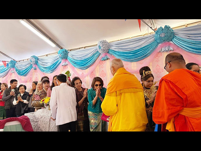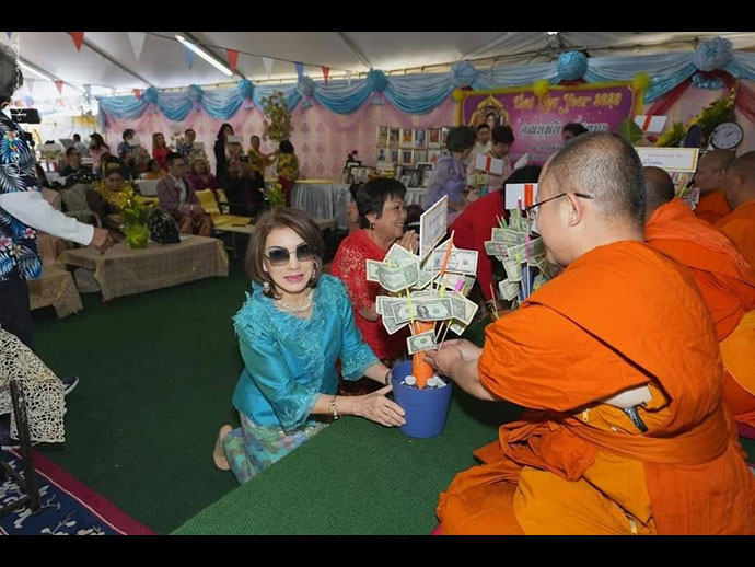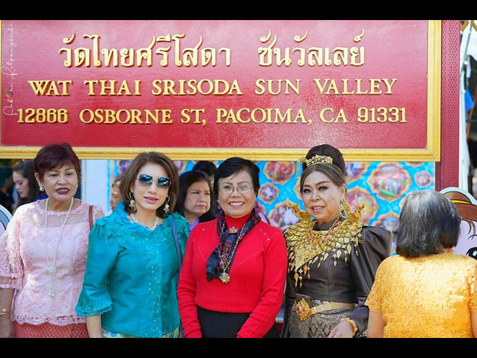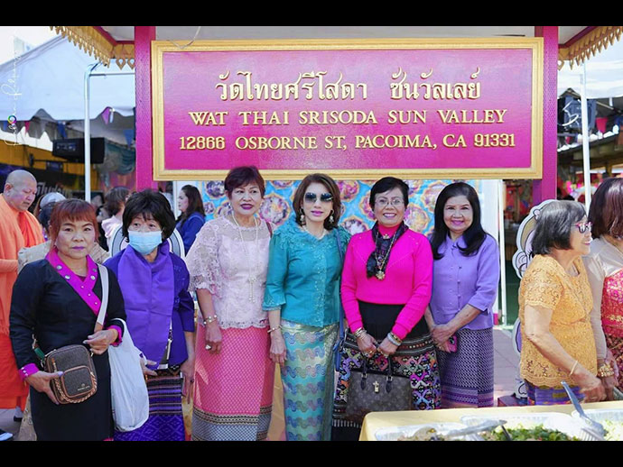 วัดไทยศรีโสดาซันวัลเลย์ รัฐแคลิฟอร์เนีย สหรัฐอเมริกา - ประธานในพิธี กงสุลใหญ่ ณ นครลอสแอนเจลิส ท่านต่อ ศรลัมพ์ และเป็นประธานฝ่ายฆราวาส ได้กล่าวให้ข้อคิดและกล่าวเปิดงาน - ประธานฝ่ายสงฆ์ พระเทพมงคลวิเทศ เจ้าอาวาสวัดไทย ลอสแอนเจลิส - ประธานในการจัดงาน คุณยุพดี เข็มทอง ถวายปัจจัยไทยธรรม (พระวัดไทย) มีกิจกรรม- สรงน้ำพระและเดินแฟชั่นผ้าไทย การฟ้อนรำแบบไทยๆ จากน้องไข่มุก และทีมฟ้อนรำอีก 3 ชุด - ท่านกงสุลใหญ่ฯมอบใบประกาศนียบัตรแก่ผู้ชนะ เป็นเสร็จพิธี - สนุกสนานในด้านเสียงเพลงกับกลุ่มศิลปินชานกรุงนำโดย นายนรินทร์ ประสานสุข