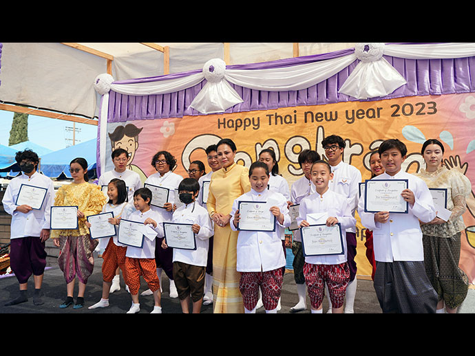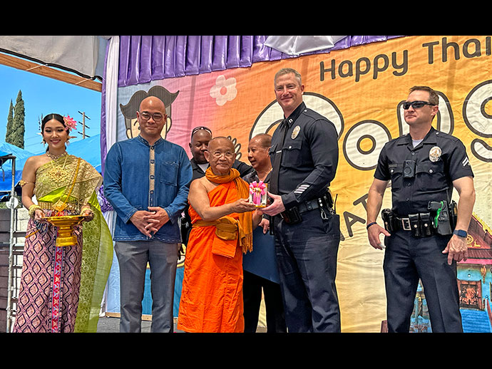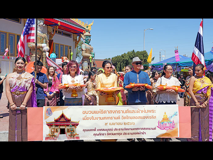 งานบุญเทศกาลประเพณีสงกรานต์ วันขึ้นปีใหม่ของไทยแต่โบราณ ซึ่งวัดไทยลอสแองเจลิส โดยคณะสงฆ์และกรรมการวัด ร่วมใจกันจัดขึ้นเป็นครั้งแรกเมื่อปี 1979 โดยมีคุณอรรคเดช ศรีพิพัฒน์ นายกสมาคมไทยฯ สมัยนั้นเป็นประธานจัดงาน สำหรับปีนี้จัดขึ้นเมื่อวันเสาร์-อาทิตย์ที่ 8-9 เมษายน ที่ผ่านมา โดยมี คุณแคทตี้ เกศสมบูรณ์ เป็นประธานจัดงาน คุณภัทรา อัศวมหากุล นายกสมาคมพยาบาลไทยแห่งแคลิฟอร์เนียภาคใต้ เป็นประธานทอดผ้าป่าบริวารสงกรานต์ ท่านกงสุลใหญ่ ณ นครลอสแอนเจลิส และภริยา คุณต่อ และ คุณสิริกมล ศรลัมพ์ ให้เกียรติเป็นประธานในพิธีฝ่ายฆราวาส โดยทั้งสองท่านเข้าร่วมกิจกรรมอันเนื่องด้วยวัฒนธรรมประเพณีที่หลากหลาย และอยู่ร่วมกิจกรรมจนงานเสร็จสิ้น เป็นกำลังใจให้คณะ กรรมการจัดงานอย่างยอดเยี่ยม ส่งผลให้การจัดงานประสบผลสำเร็จอย่างน่าชื่นชมอีกครั้งหนึ่ง