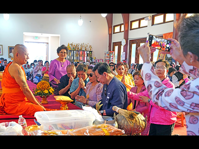 บุญเทศน์มหาชาติ หรือการพรรณนาเรื่อง “พระเวชสันดรชาดก” พระประวัติพระชาติสุดท้ายขององค์สมเด็จพระสัมมาสัมพุทธเจ้า ก่อนประสูติเป็นเจ้าชายสิทธัตถะ แล้วเสด็จออกผนวชแสวงหาโมกขธรรม จนได้ตรัสรู้เป็นศาสดาเอกในโลก ซึ่งวัดไทยฯ จัดแสดงทุกๆ วันอาทิตย์ตลอดเทศกาลเข้าพรรษานั้น โดยเมื่อบ่ายวันอาทิตย์ที่ 29 ตุลาคม ที่ผ่านมาเป็นกัณฑ์ที่ 13 นครกัณฑ์ ประกอบด้วย 48 พระคาถา พระครูใบฎีกาสันติภาพ สนฺติกโร เป็นองค์แสดง เจ้าภาพกัณฑ์เทศโดย คุณตรีรัตน์ เอี่ยมอุไรรัตน์ แห่งห้องอาหาร “Blue Elephant” เมืองเบเกอร์ฟิลด์ และคณะ Thai New Year Festival โดยคุณศรีวงศ์ อาญาสิทธิ์ และทีมงาน พร้อมด้วยอุบาสก อุบาสิกา สาธุชนทั่วไปร่วมเป็นเจ้าภาพรวบรวมปัจจัยกัณฑ์เทศน์ถวายเข้าวัดในวันนี่ $7,777.- ขออำนาจคุณพระศรีรัตนตรัย ตลอดจนสิ่งศักดิ์สิทธิ์ทั้งหลาย ในสากลโลก โปรดจงดลบันดาลให้ทุกท่านและครอบครัว มีความสุข ลุถึงความเจริญรุ่งเรืองในชีวิต ด้วยอายุ วรรณะ สุขะ พละ ปฏิภาณ ธนสารสมบัติ ธรรมสารสมบัติ ตลอดไปเทอญ สาธุ
