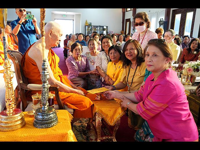 คณะสงฆ์วัดไทยฯ โดยหลวงพ่อใหญ่ ท่านเจ้าคุณพระเทพมงคลวิเทศ เจ้าอาวาส และกรรมการวัด ขออนุโมทนาบุญขอบคุณท่านเจ้าคุณพระราชญาณโกศล เจ้าอาวาสวัดป่าธรรมชาติ เมืองลาพวนเต้ ในโอกาสที่นำคณะศิษยานุศิษย์และญาติโยมอุบาสกอุบาสิกาจำนวน 170 ท่าน ทอดผ้าป่าถวายวัดไทยฯ เมื่อวันที่ 19 พฤศจิกายน เวลา 06.30 น. ถือเป็นธรรมเนียมที่หลังวันออกพรรษา บรรดาวัดต่างๆ ในเขตแอลเอและใกล้เคียง เช่น วัดไทยแอลเอและวัดป่าธรรมชาติฯ จะนำผ้าป่าไปถวายให้แก่วัดต่างๆ เรียกว่า “ผ้าป่า 9 วัด” เพื่อสนับสนุนวัดนั้นๆ ตามสมควรแก่ศรัทธา ขออนุโมทนาบุญมา ณ โอกาสนี้ ขอให้เจริญในธรรมรุ่งเรืองยั่งยืนในธรรมตลอดกาล