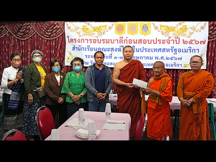 ขออนุโมทนาบุญเจ้าภาพถวายภัตตาหารในศาสนกิจโครงการอบรมบาลีก่อนสอบ ซึ่งจัดขึ้น ณ วัดไทยลอสแองเจลิสขณะนี้ โดยวันที่ 2 พฤษภาคม 2567 วันที่ 2 ของการอบรมมีเจ้าภาพศรัทธานำภัตตาหารมาถวายดังต่อไปนี้ คือ เจ้าภาพหลักได้แก่วัดสุทธาวาส เมืองริเวอร์ไซด์ ส่วนเจ้าภาพรายอื่นๆ ขอประกาศอนุโมทนาบุญตามลำดับดังนี้ ครัววัดไทยฯ จัดเตรียมผัดไทยเป็นภัตตาหารเช้า ส่วนภัตตาหารเพลเป็นหมูและไข่พะโล้ ผัดฉ่าทะเล มะระผัดไข่ ประหลาดทูทอด ผักรวม - น้ำพริก และแกงจืดเต้าหู้