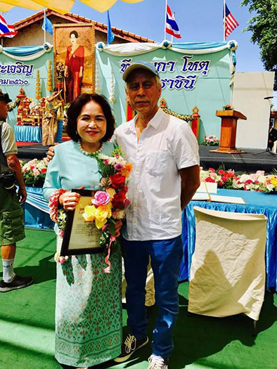 "งานวันแม่"ที่วัดไทยลอสแองเจลิสเมื่อวันอาทิตย์ที่ผ่านมา มีการประกาศเกียรติคุณของผู้ที่ได้รับการคัดเลือกให้เป็น"คุณแม่ดีเด่น 2017"ทั้งหมด 6 คุณแม่ หนึ่งในหกสาวงามนั้นคือ คุณพี่ละออ รัศมี รองผู้อำนวยการศูนย์พัฒนาสุขภาพชุมชนผู้มีจิตเมตตาให้ความอนุเคราะห์แก่ชาวไทยทั้งปวงที่เข้าไปขอรับการช่วยเหลือจากศูนย์ ขนาดคนอื่นพี่ออยังให้การดูแลเอาใจใส่เป็นอย่างดี แล้วลูกของตัวเองก็ย่อมได้รับกรรมดีที่คุณแม่สร้างสมเอาไว้มากมาย คนที่ยืนยันได้ว่าพี่ออเลี้ยงลูกได้ดีมากจนถึงดีที่สุดคือผู้ชายในภาพนี้แหละ ที่สุภาพบุรุษรูปหล่อคนนี้รู้เรื่องราวดีๆทั้งหมดของครอบครัวพี่ออเพราะเขาชื่อ สุรพันธ์ รัศมี คนที่พี่ออไปเอานามสกุลของเขามาใช้งัยหละ
