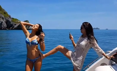 เรียกว่าเป็นซีนที่ใครๆเห็นแล้วไม่รู้ว่าจะฮาหรือสงสารดี เมื่อสองเมนเทอร์คนเก่ง ที่ทั้งรักและสนิทชิดเชื้อกันมาก อย่าง “ลูกเกด เมทินี กิ่งโพยม” และ ”พิม ซอนย่า คูลลิ่ง” ยกครอบครัวเที่ยวเกาะสมุย โดยขึ้นเรือยอร์ชไปรับลมอาบแดดกลางทะเล แบบ ชิล ชิล