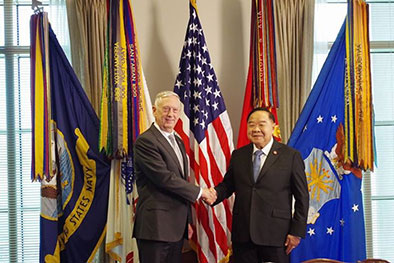 ต่อจากนั้นได้เดินทางไปกระทรวงกลาโหม (Department of Defense) เพื่อเยี่ยมคำนับและหารือกับ พล.อ.เจมส์ แมตทิส (James Mathis) รมว.กระทรวงกลาโหมสหรัฐฯ โดยได้รับการต้อนรับอย่างอบอุ่นและมีมิตรไมตรียิ่ง