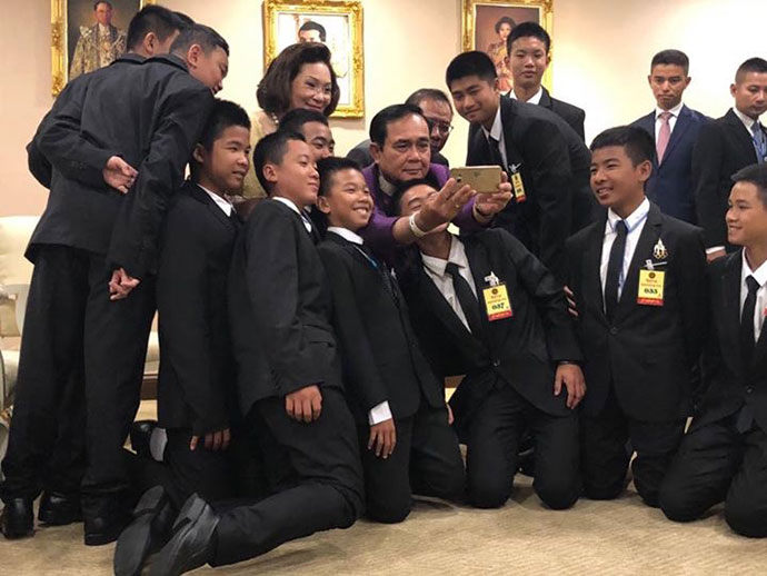โดยนายกฯ กล่าวว่า ต้องขอบคุณที่เผยแพร่ชื่อเสียงให้คนไทย ให้แก่ประเทศไทย โดยเฉพาะทีมหมูป่าที่ได้รับการยอมรับจากเวทีโลก ทุกประเทศที่ชื่นชมการช่วยเหลือของหน่วยงานรัฐบาลและประชาชน เป็นครั้งเดียวในโลกที่เห็นภาพนี้ทั้งประเทศซึ่งเป็นส่วนดีที่ได้มา และอีกส่วนหนึ่งเขาบอกเด็กทั้ง 13 คนมีความเข้มแข็งทางร่างกายและจิตใจ เรียนรู้อยู่กับธรรมชาติด้วยความมีวินัย และการนำของโค้ช สองสิ่งต้องไปด้วยกัน เราอยู่ในสถานการณ์ที่ไม่คาดคิด และทำให้เกิดสถานการณ์ดีขึ้นมาโดยไม่ได้ตั้งใจ ทุกคนที่ไปช่วยก็ไปด้วยแรงใจ แรงศรัทธา และเห็นเราเป็นเยาวชนด้วย ขณะที่ประชาชนในพื้นที่ทุกอย่างเพื่อให้หลานๆ ปลอดภัย