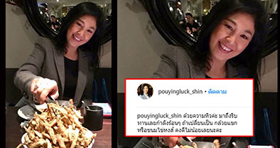 ยิ่งลักษณ์ ชินวัตร อดีตนายกรัฐมนตรี ได้โพสต์ภาพผ่านอินสตาแกรม @pouyingluck_shin ขณะกำลังรับประทานอาหารที่ร้านแห่งหนึ่งในต่างประเทศ พร้อมกับระบุว่า “ด้วยความหิวค่ะ มาถึงก็รีบทานเลยกำลังร้อนๆ ถ้าเปลี่ยนเป็น กล้วยแขก หรือขนมไข่หงส์ คงดีไม่น้อยเลยนะคะ”