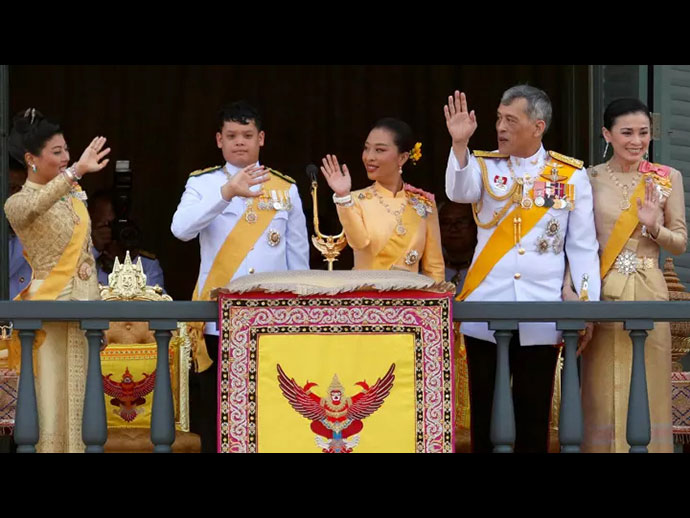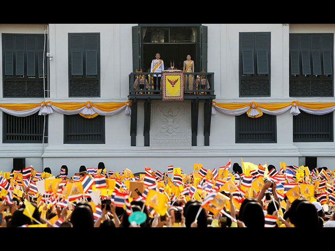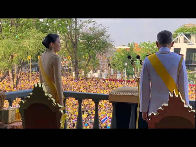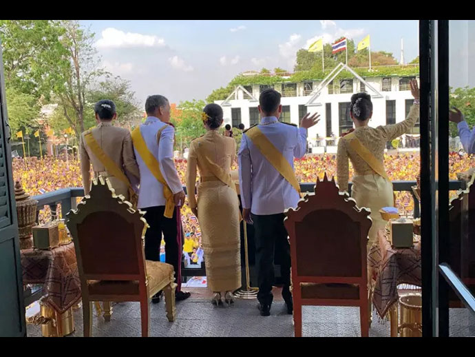 ลำดับเวลา พระบาทสมเด็จพระเจ้าอยู่หัว เสด็จออกสีหบัญชร พระที่นั่งสุทไธสวรรย์ปราสาท พร้อมด้วยพระบรมราชินี พระราชโอรส พระราชธิดา ท่ามกลางพสกนิกรที่มาเฝ้าฯรับเสด็จ ถวายพระพรชัยมงคลอย่างเนืองแน่น ในการพระราชพิธีบรมราชาภิเษก