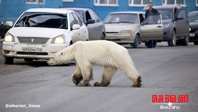 หมีขาวขั้วโลกหิวโซโผล่เข้าเมืองแถบไซบีเรียครั้งแรกใน 40 ปี