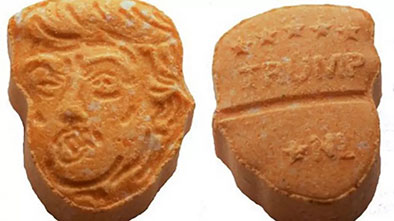 ยาอี ดังกล่าวถูกอัดเม็ดเป็นรูปศีรษะของโดนัลด์ ทรัมป์ การยึดยาเสพติดครั้งนี้คล้ายกับคดียึดยาเสพติดในรัฐอินเดียนาในปี 2561 ซึ่งหนังสือพิมพ์ลาฟาแบตต์ คูเรียร์-เจอร์นัล รายงานว่า ตำรวจลาดตระเวนถนนไฮเวย์เชื่อมระหว่างรัฐ ได้ยึดยาอีเม็ดสีส้มซึ่งถูกอัดเม็ดเป็นรูปศีรษะของโดนัลด์ ทรัมป์ เช่นเดียวกัน โดยยาเม็ดดังกล่าวด้านหน้าเป็นรูปทรัมป์เบะปาก ด้านหลังถูกประทับด้วยข้อความ “Great Again” (ยิ่งใหญ่อีกครั้ง) ซึ่งเป็นสโลแกนของทรัมป์ ขณะท่ีสถานีโทรทัศน์ “เอ็นบีซี นิวส์” รายงานว่า ยาเสพติดลักษณะดังกล่าวไม่ได้ถูกตรวจพบเฉพาะในสหรัฐอเมริกาเท่านั้น โดยในปี 2560 ตำรวจเยอรมนีก็ยึดยาชนิดนี้ได้อย่างน้อย 5,000 เม็ด