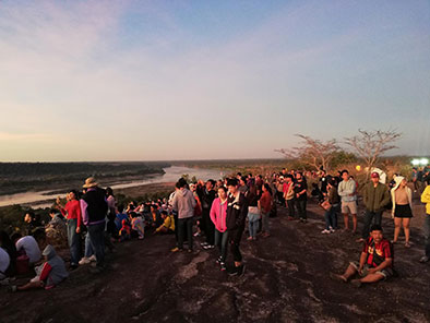 ภายใต้ชื่องาน “ฮับลมหนาว นับดาวนำกัน เบิ่งพันธ์ไม้เทิ่งผาท้าตะวันแสงแรกของปี”ซึ่งปีนี้มีนักท่องเที่ยวทั้งชาวไทยและชาวต่างประเทศจำนวนมากพาครอบครัวขึ้นมากางเต็นท์ที่ลานผาแต้มภายในอุทยานแห่งชาติผาแต้ม ตั้งแต่ช่วงเย็นของเมื่อวาน เพื่อร่วมเคานต์ดาวน์และร่วมรับตะวันใหม่ของปี 2563 โดยนักท่องเที่ยวต่างตื่นนอนขึ้นมารวมตัวกันอยู่ที่บริเวณหน้าผาเพื่อจับจองพื้นที่เพื่อรอรับแสงแรกของปี 2563