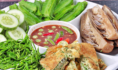 โดยอาจจะเน้นผักสมุนไพรที่มีสรรพคุณทางยาในเมนูนี้ให้มากขึ้น เช่น ดอกขี้เหล็ก ยอดมะยม ใบเหลียง ยอดสะเดา มะระขี้นก ฟักข้าว ผักเชียงดา คะน้า มะรุม ผักแพว ผักหลากสี ซึ่งผักเหล่านี้อุดมไปด้วยสารกลุ่มแอนโทไซยานิน ซึ่งเป็นสารกลุ่มฟลาโวนอยด์ที่มีฤทธิ์ต้านอนุมูลอิสระสูง และมีวิตามินซีสูงด้วยค่ะ.
