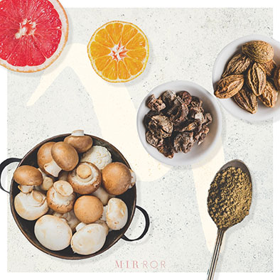 ผัก ผลไม้ และยาจาก "สมุนไพร" ที่ช่วยกระตุ้นภูมิคุ้มกันของร่างกาย เพื่อสู้กับไวรัส "โควิด19" ได้แก่ พลูคาวหรือผักคาวตอง เห็ดต่างๆ ซึ่งมีสารสำคัญคือ "เบต้ากลูแคน" เช่น เห็ดหอม เห็ดนางฟ้า เห็ดออรินจิ เห็ดหลินจือ และตรีผลา ที่ประกอบไปด้วย สมอไทย สมอพิเภก มะขามป้อม สามารถรับประทานในรูปของน้ำต้มดื่ม