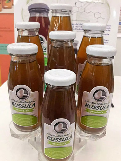 จากสรรพคุณทางเภสัชวิทยา วว. จึงนำสารสกัดจากเห็ดน้ำขาวมาพัฒนาเป็นผลิตภัณฑ์เครื่องดื่มฟังก์ชันนัล “รัสซูล่า (RUSSULA)”