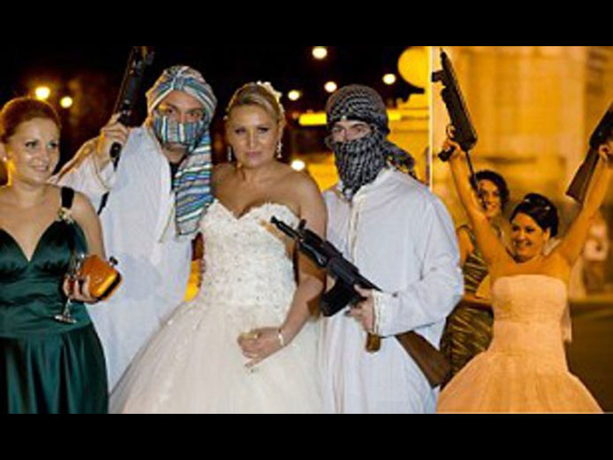 ภาพหมายเลข 3. ประเพณีลักพาตัวเจ้าสาวของประเทศโรมาเนีย โดยเจ้าสาวนั้นจะถูกลักพาตัวโดยเพื่อนๆ หรือบางครอบครัวถึงกลับจ้างคนให้มาลักพาตัวจริงๆเลยด้วย ส่วนเจ้าบ่าวก็มีหน้าที่ตามหาและจ่ายเงินค่าไถ่เพื่อให้ได้เจ้าสาวกลับคืนมาทันในคืนแต่งงาน