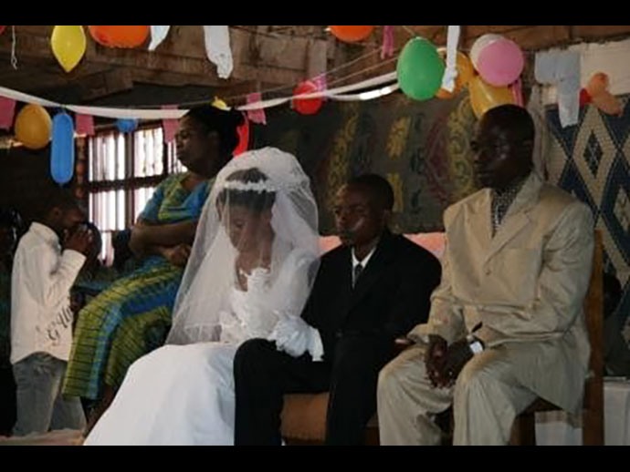 ภาพหมายเลข 4.ถึงแม้จะเป็นวันแห่งความสุข แต่ว่าประเพณีของชาวคองโกคือแขกและบ่าว-สาวนั้นห้ามมีรอยยิ้มในวันแต่งงาน ! เนื่องจากว่าในประเทศคองโกยังมีการแลกเปลี่ยนตัวเจ้าสาวกับ วัว หรือม้าอยู่ ซึ่งการยิ้มหรือแสดงท่าทีที่มีความสุขนั้น ถือว่าเป็นการไม่เคารพครอบครัวของฝ่ายหญิง
