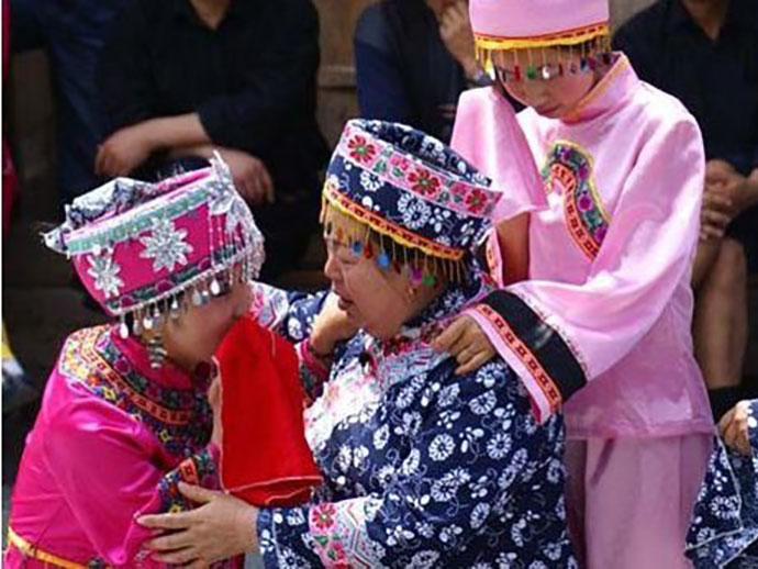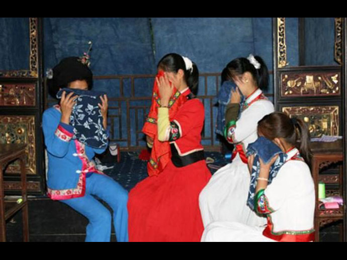 ภาพหมายเลข 5.1, 5.2 พิธีงานแต่งของชนเผ่าน้อยถูเจีย ประเทศจีนเจ้าสาวต้องร้องไห้วันละ 1 ชั่วโมงติดต่อกันเป็นเวลา 10 วัน ซึ่งวันต่อมาแม่เจ้าสาวจะร้องด้วย ตามด้วยยาย จนวันสุดท้ายก่อนแต่งผู้หญิงทุกคนในครอบครัวจะร้องด้วย ถือเป็นการแสดงความสุขร่วมกัน ว่ากันว่าเมื่อผู้หญิงหลายคนมาร้องไห้รวมกันด้วยโทนเสียงที่แตกต่างนั้นฟังแล้วไพเราะ เหมือนได้ฟังเพลง ขอขอบคุณที่มา thetravel.com