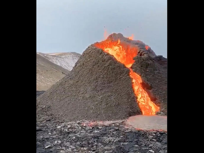 สำนักข่าวเอพี ให้ข้อมูลว่า ภูเขาไฟ Fragadalsfiall ได้เริ่มปะทุเมื่อวันที่ 19 มี.ค. 2564 ทำให้ลาวาพวยพุ่งออกมาหลายจุด ความสูง 650 ฟุต และมีลาวาไหลลงมาตามภูเขาไฟ ออกมาตามรอยแตกของเปลือกโลก เป็นธารลาวาความยาวหลายร้อยเมตร บริเวณคาบสมุทรเรคยาเนส ซึ่งห่างจากเมืองเรคยาวิก 40 กิโลเมตร เมืองหลวงของไอซ์แลนด์เพียง 40 กิโลเมตร