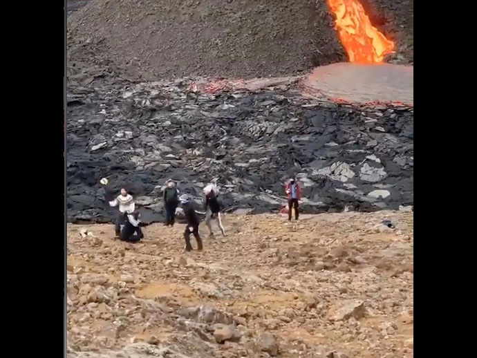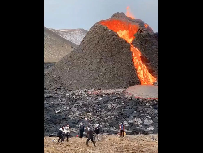 จากเหตุการณ์ ภูเขาไฟ Fragadalsfiall ที่ประเทศไอซ์แลนด์ ได้เกิดการปะทุในรอบ 800 ปี ส่งผลให้นักท่องเที่ยวแห่ชมธารลาวา จนกลายเป็นจุดหมายท่องเที่ยวยอดนิยมในไอซ์แลนด์ ที่มีผู้คนมาเยือนแต่ละวันจำนวนมาก และมีกิจกรรมหลายอย่างเกิดขึ้น รวมถึงการเล่นวอลเลย์บอลด้วย