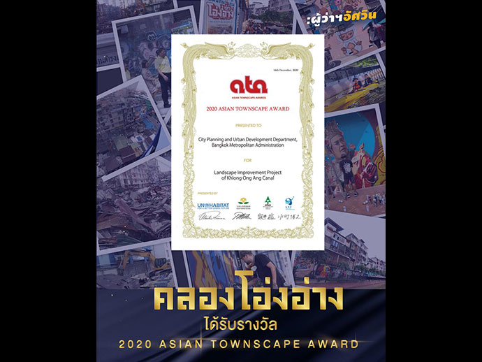 รางวัลระดับโลกที่ #คลองโอ่งอ่าง กรุงเทพมหานคร ได้รับรางวัลเมื่อต้นปีที่ผ่านมา ก็คือ 2020 Asian Townscape Awards จาก UN-Habitat Fukuoka เป็น 1 ใน 6 ประเทศ ที่ได้รับการคัดเลือกให้เป็น ต้นแบบการปรับปรุงภูมิทัศน์ (Landscape Improvement Project) ที่เหมาะสมกับการพัฒนาคุณภาพชีวิตของประชาชนควบคู่ไปกับการพัฒนาด้านสิ่งแวดล้อม ความปลอดภัย ศิลปวัฒนธรรม ที่มีความสอดคล้องระหว่างภูมิทัศน์ของเมืองกับรูปแบบการดำเนินชีวิตดำเนินการ