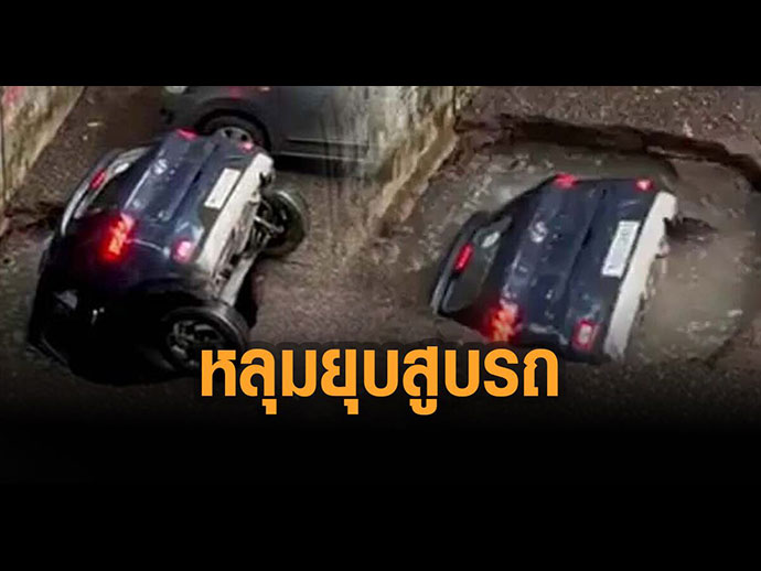 ระทึก! หลุมยุบสูบรถ จมน้ำหายทั้งคัน กู้ภัยช่วย 12 ชม.
