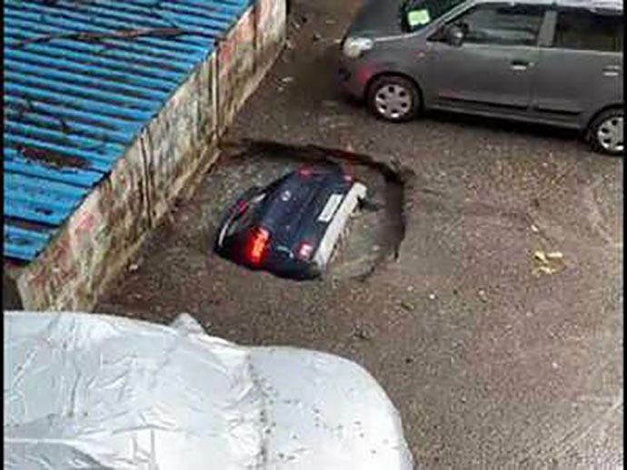 เว็บไซต์ indianexpress.com รายงานเหตุน่าตกตะลึงเมื่อมีรถคันหนึ่งที่จอดอยู่ในลานจอดรถ ถูกหลุมยุบดูดกลืนรถจมหายลงไปในน้ำที่อยู่ใต้ดินจนมิดทั้งคัน โดยเหตุเกิดขึ้นที่เมืองมุมไบ ประเทศอินเดีย