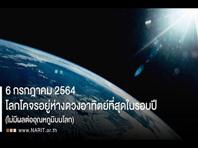 NARIT สถาบันวิจัยดาราศาสตร์แห่งชาติ โพสต์ผ่านเฟซบุ๊กระบุ 6 กรกฎาคม 2564 #โลกโคจรอยู่ห่างดวงอาทิตย์ที่สุดในรอบปี