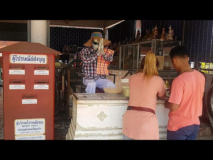 เชื่อกันว่า...ทำบุญไหว้พระ ถวายพวงมาลัย ดอกไม้ ธูปเทียนบูชา หากตายไปแล้วเกิดชาติหน้าก็จักอุดมด้วยลาภยศ ชื่อเสียง