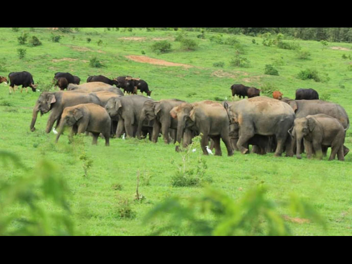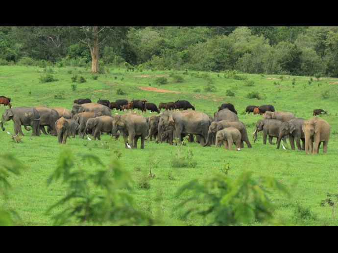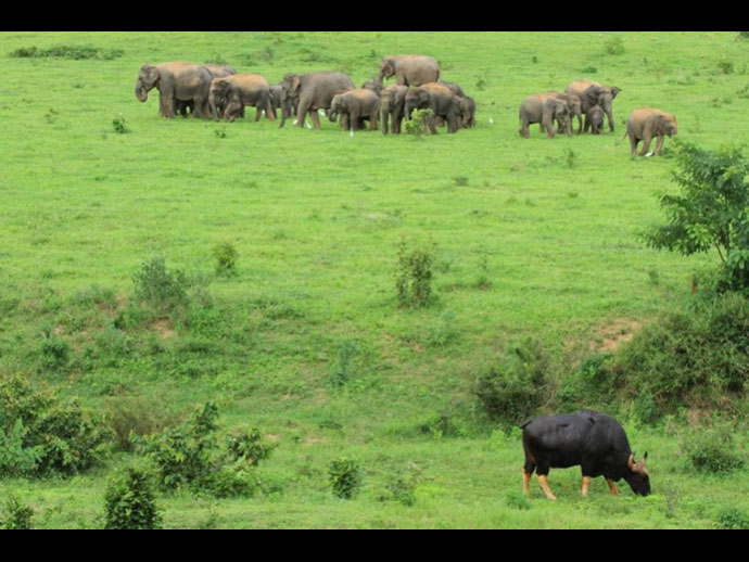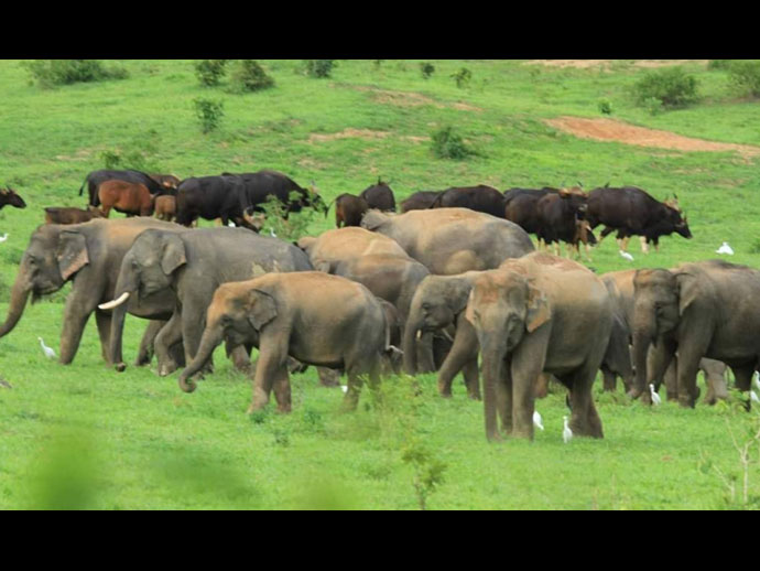 'ความอลังการจากการรวมตัว...ช้างป่าและกระทิงรวมตัวกันออกหากินในทุ่งหญ้าเป็นจำนวนมาก'