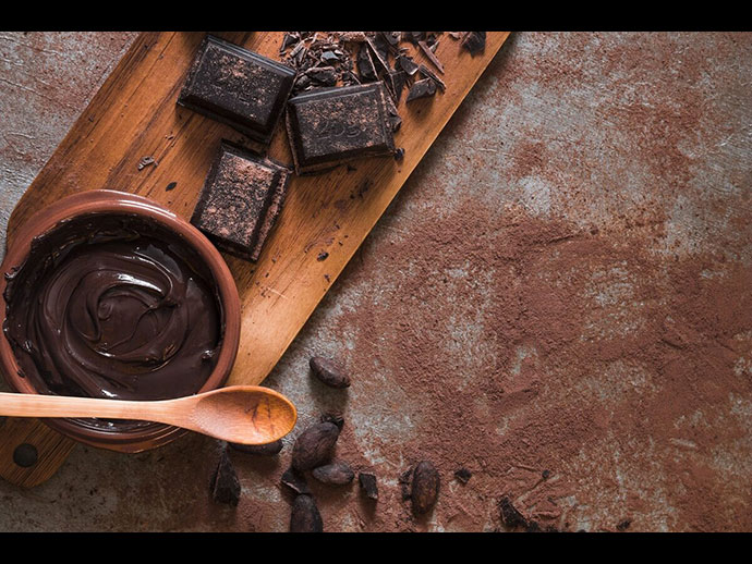 7.ดาร์กช็อกโกแลต ทำมาจากเมล็ดโกโก้ซึ่งเป็นแหล่งอุดมด้วยทีโอโบรมีน (theobromine) มีลักษณะคล้ายคาเฟอีน (caffeine) และทีโอฟิลลีน (theophylline) ทำให้รู้สึกดีและผ่อนคลาย อีกทั้งยังมีฟีนิลเอทิลเอมีน (Phenyl ethyl amine) หรือ PEA ช่วยให้สารสื่อประสาททำงานได้ดีขึ้น และกรดแกมมาแอมิโนบิวทิริก (Gamma-Aminobutyric acid) หรือ GABA ซึ่งช่วยลดความวิตกกังวลได้ แต่ช็อกโกแลตบางชนิดเพิ่มส่วนผสมบางอย่าง เช่น น้ำตาลและไขมัน ดังนั้นควรอ่านฉลากให้ดีก่อนรับประทาน