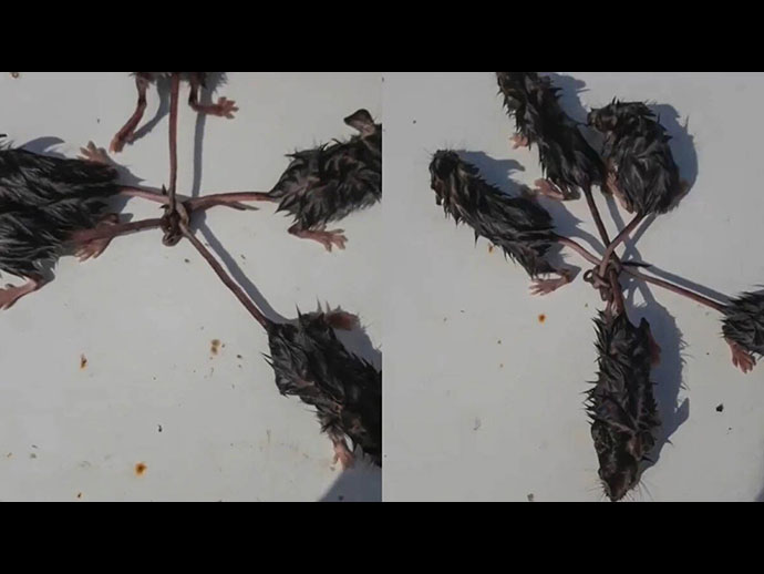อาลีบูลัตกล่าวว่า “ผมเชื่อว่าหนูถูกมัดโดยแม่ของพวกมันที่ต้องการป้องกันไม่ให้พวกมันตกลงไปในน้ำ”
